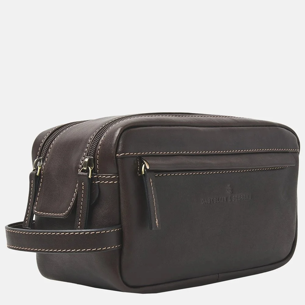 Praktisch, stijlvol en gemaakt vanuit ambacht. Dat is de Castelijn en Beerens Verona toilettas. De ruime toilettas wordt gemaakt van Italiaans rundleer, wat nog altijd volgens eewenoude Toscaanse traidtie plantaardig wordt gelooid. Van je deodorant, douchedel en tandenborstel tot scheerschuim, je scheerapparaat en parfum. In dit stoere model neem jij al jouw verzorgingsproducten handig op reis óf netjes bij elkaar in de badkamer. Gaat deze Castelijn en Beerens Verona toilettas voortaan met jou mee op reis? De eigenschappen van deze toilettas zijn: * Hoofdvak met dubbele ritssluiting * Voorvak met ritssluiting * Ritsvak * Handvat