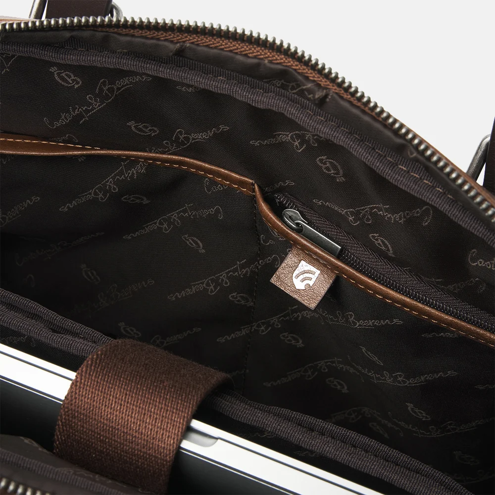 Is je huidige laptoptas aan vervanging toe? Dan is dit exemplaar van Castelijn & Beerens een zeer goede vervanger. Deze laptoptas heeft alles wat je zoekt in een goede kwalitatieve laptoptas. De tas is gemaakt van Italiaans nappa leer en heeft een uitstekende kwaliteit. De tas is niet alleen stijlvol, maar ook nog eens praktisch in gebruik. Perfect toch? Deze laptoptas heeft een ruim hoofdvak welke sluit door middel van een ritssluiting. Binnenin bevindt zich een insteekvak, 15.6 inch laptopvak en een RFID ritsvak. Dit RFID-ritsvak beschermt jouw pasjes en/of paspoort tegen uitlezen. Aan de achterzijde bevindt zich nog een achtervak met ritssluiting. Deze laptoptas is draagbaar in de hand maar ook over de schouder door middel van de afneembare en verstelbare schouderband. De eigenschappen van deze laptoptas zijn: * Hoofdvak met ritssluiting * Laptopvak 15.6 inch * RFID Ritsvak * Insteekvak * Ritsvak achterkant * Bevestigingsband voor trekstang * Twee handvatten * Afneembare en verstelbare schouderband * Zilverkleurige hardware