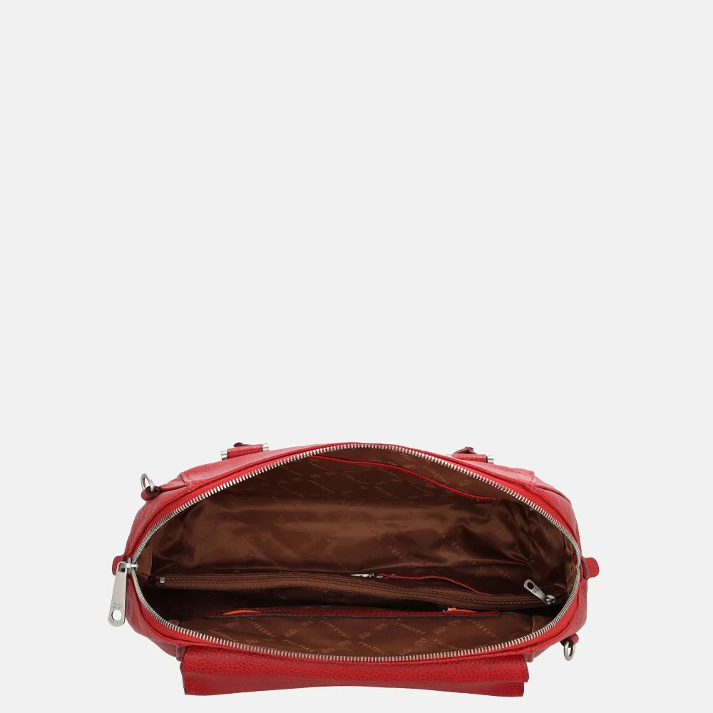 Deze fijne handtas is een echte toevoeging aan jouw garderobe omdat hij overal bij past en dus altijd, heel het jaar door, te dragen is. Draag dit leuke modelletje chique aan de twee vaste handvatten of nonchalant over de schouder door middel van de afneembare en verstelbare schouderband. Daarnaast berg je gemakkelijk al jouw spulletjes op in deze all time favourite door de verschillende rits en insteekvakken. Loop jij volgende keer met deze leukerd om jouw armen? De eigenschappen van deze handtas zijn: * Hoofdvak met overslag en ritssluiting * Ritsvak * Insteekvak * Tussenschot met ritssluiting * Ritsvak achterkant * Twee vaste handvatten * Afneembare en verstelbare schouderband * Zilverkleurige hardware