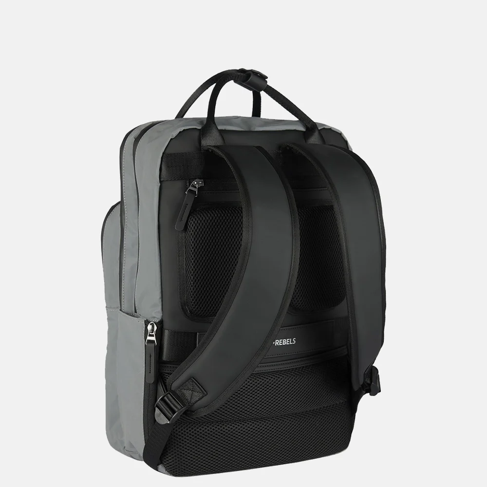 Met de reflecterende Milwaukee rugzak van het merk New Rebels ben je klaar voor elke reis. Deze rugzak biedt voldoende ruimte voor een 15,6-inch laptop in het gewatteerde laptopvak, terwijl de drie ander grote hoofdvakken voldoende plek bieden voor A4-documenten, boeken of andere benodigdheden. Kleine spullen berg je overzichtelijk op in de aparte vakjes. De rugzak is gemaakt van waterafstotend PU-materiaal, zo blijven je spullen veilig en droog tijdens een onverwachte regenbui, skitocht of wandeling in de natuur. Het gewatteerde rugpaneel en verstelbare schouderbanden zorgen voor een fijne draagcomfort, terwijl de reflecterende afwerking je een veilige en opvallende look geven! De eigenschappen van deze rugzak zijn: * Twee hoofdvakken met ritssluiting * Laptopvak 15 inch * Voorvak met ritssluiting * Zijvak * Twee zijvakken met ritssluiting * Achtervak met ritslsuiting * Bevestigingsband voor trekstang * Vast handvat * Gewatteerd rugpaneel * Verstelbare schouderbanden * Reflecterend * Donkerkleurige hardware