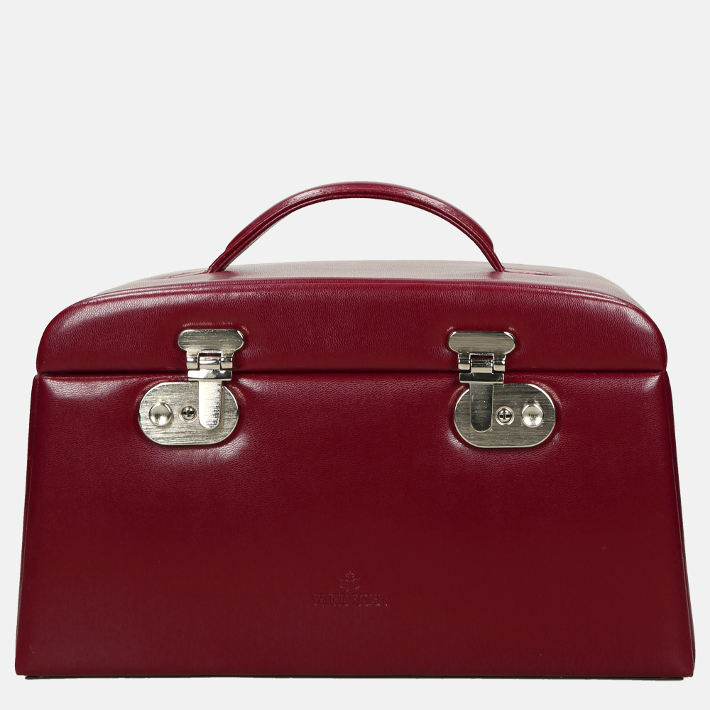 Veel sieraden, maar nooit genoeg plek om ze overzichtelijk op te ruimen? Dat is verleden tijd met deze sieradendoos van het luxe merk Windrose! Deze bijouxbox heeft veel verschillende opbergvakken speciaal ingericht voor jouw sieraden. Denk aan ringenbakken, armbandenkussentjes en vakjes voor oorbellen en kettingen. De zachte binnenvoering van deze Windrose sieradendoos zorgt ervoor dat jouw juwelen niet beschadigen of krassen. De eigenschappen van deze tas zijn: * Deksel met twee schuifsluitingen en slotje * Twee lussen * Spiegel * Hoofdvak met: * Vier vakken * Drie ringenvakken * Twee vakken met klep * Twee losse kussentjes * Zes uitschuiflades met druksluiting * Handvat