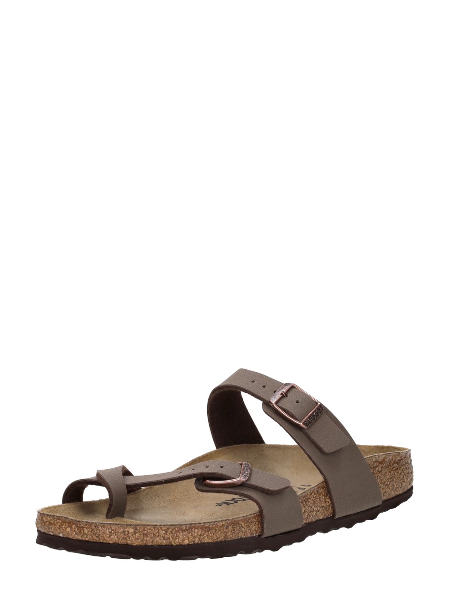 Deze sierlijke slippers komen uit de collectie van Birkenstock. Teenslipper Mayari Gator Gleam Black is sierlijk vormgegeven en heeft een bovenwerk van Birko-Flor. Birko-Flor is een buitengewoon sterk antibacterieel kunstleder. Door de bewerking van het materiaal krijgen ze een luxueuze uitstraling. Het zachte voetbed zorgt dankzij de geïntegreerde schuimlaag voor een extra dosis draagcomfort. Deze zwarte dames slippers van Birkenstock 1016040 beschikken over de bekende slijtvaste rubberen zool. Het model heeft een normale wijdte maat.