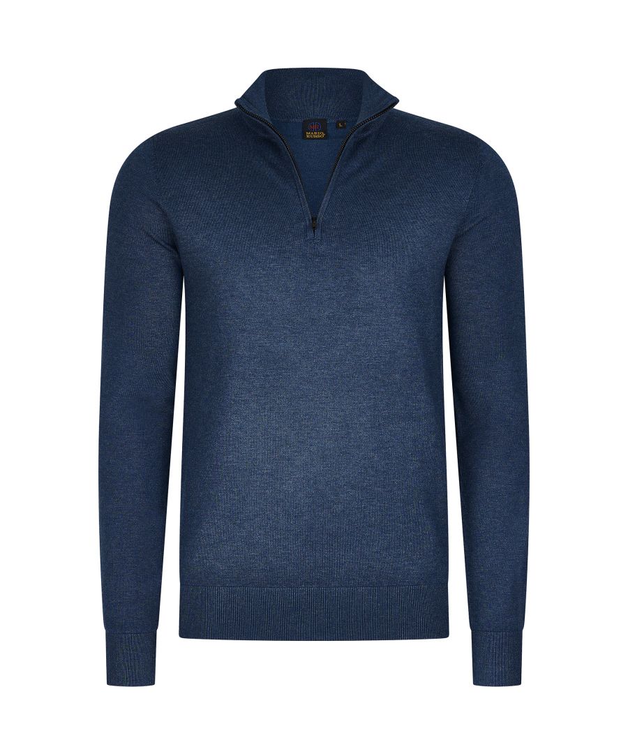 Mario Russo Sweaters Half Zip Trui Jeans Blue Blauw