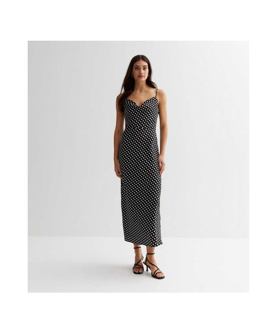 Verfraai je weekendgarderobe met ons midaxi coldess. Met een zwarte polkaprint met gedrapeerd ontwerp en een midaxi-lengte, waar moet je niet van houden? Deze jurk met zijn nauwsluitende pasvorm zal je op de juiste plaatsen knuffelen. Stijl met hakken en simpele accessoires voor een chique finish.