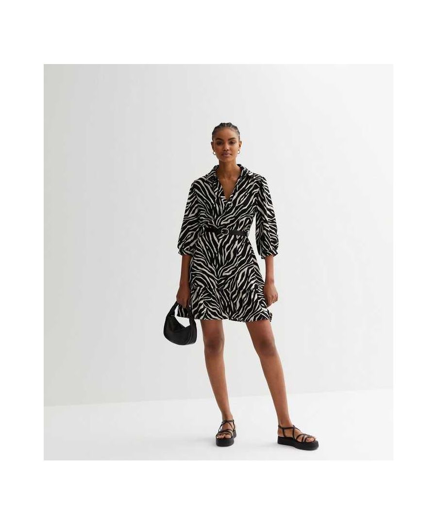 Deze mini-jurk met gesmokte kraag en riem in zebraprint geeft je look een edge. Draag het met strappy hakken of sandalen voor een moeiteloos coole look in een mono zebraprint materiaal met een halslijn met kraag, kwartmouwen en een diepe ruche zoomlijn. Deze veelzijdige jurk, die wordt geleverd met een ton-sur-ton riem, mag niet ontbreken in de garderobe van elk seizoen.