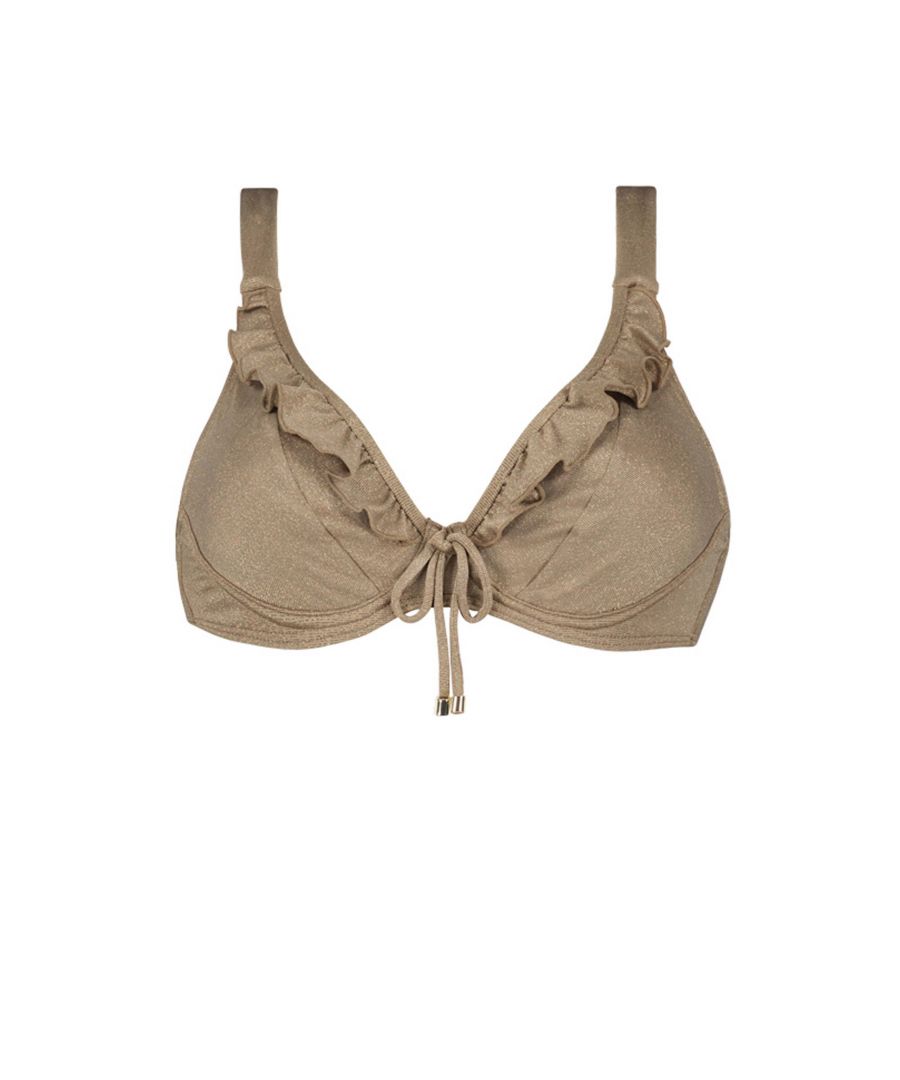 Cyell voorgevormde halter bikinitop Sunset Sparkle met ruches en lurex goud