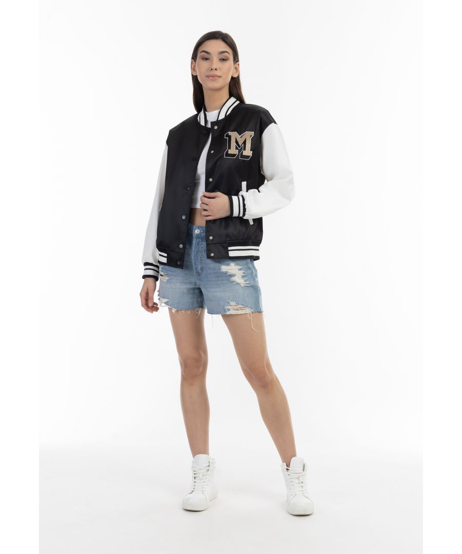 Dit varsity-jack van myMo is geïnspireerd op de klassieke college-stijl en is een absolute topper! Het is gemaakt van een glanzende satijnen stof, heeft een hoogwaardige afwerking en klassieke tweekleurige mouwen en zoom. De gestreepte ribboorden, de steekzakken en de geborduurde M-patch zorgen voor een authentieke retrolook.