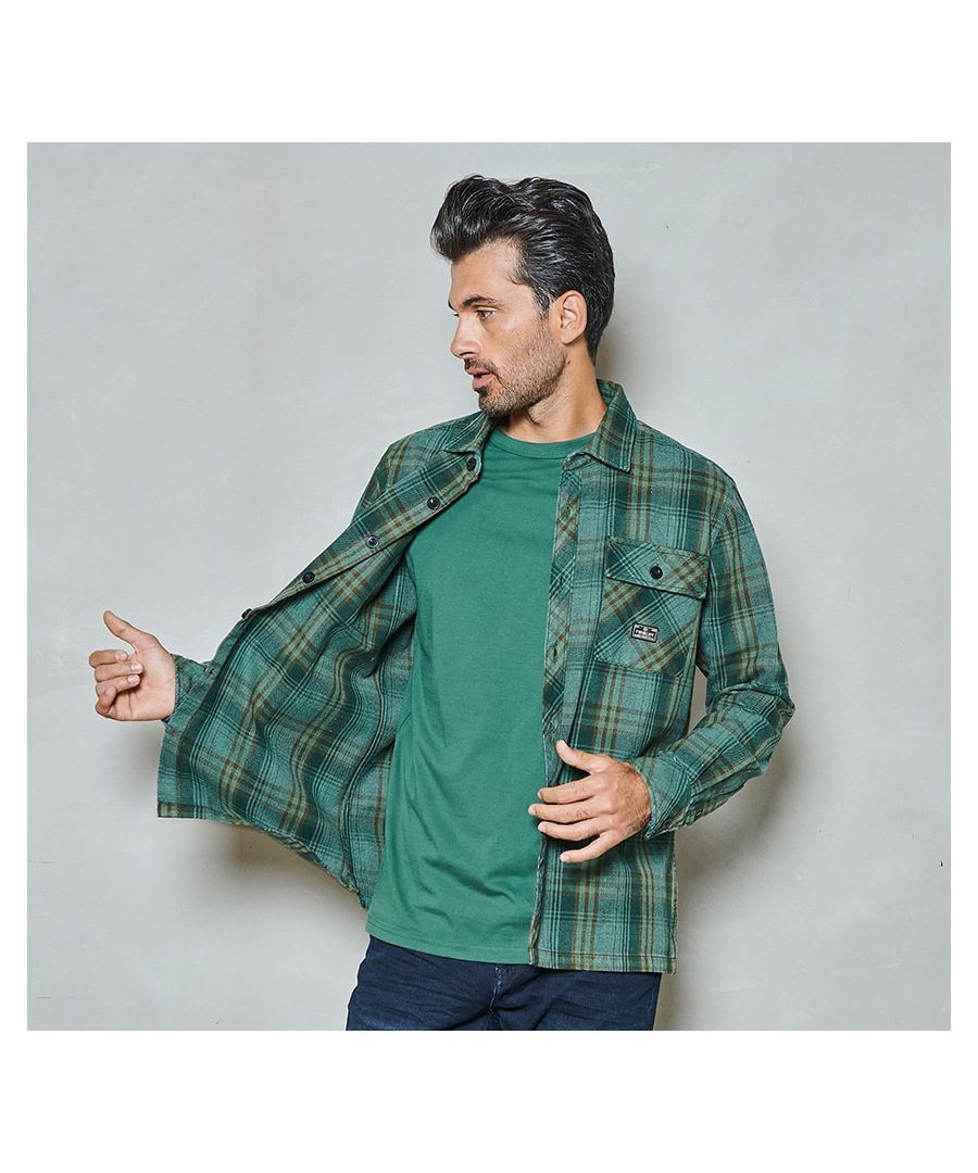 Dit overshirt is gemaakt van 100% BCI katoen, is in een ruit geweven en daarna overgeverfd. De pasvorm is extra ruim, heeft twee grote zakken op de borst met een klein label aan de linkerkant. Ons model is 1,88 en draagt maat M