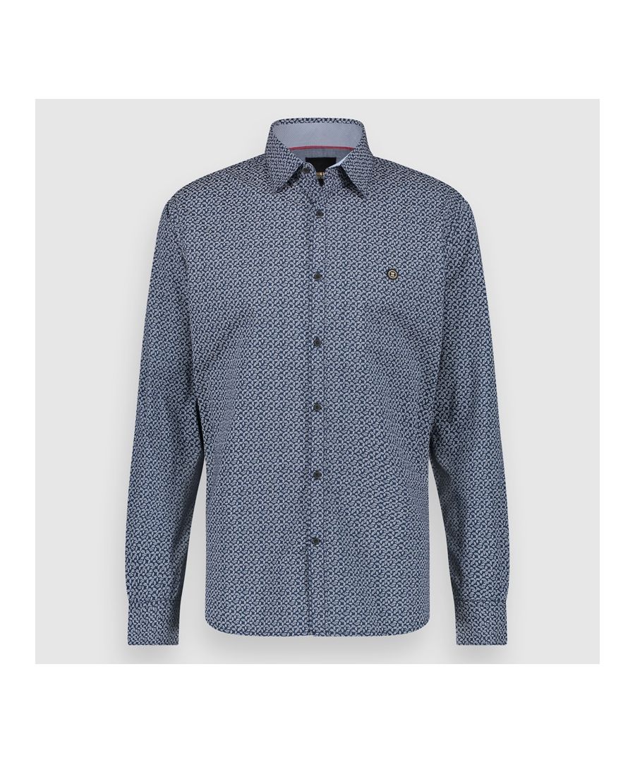 Dit shirt heeft een print voor een sportieve uitstraling Door het gebruik van 97% katoen en 3% elastane heeft het een comfortable stretch en is uitgevoerd in een regular fit. De kraag heeft een kleine iconische knoop aan de achterzijde en een kleine badge op de borst. Een overhemd dat zowel stoer op jeans gedragen kan worden, als ook smart gecombineerd onder een colbert.