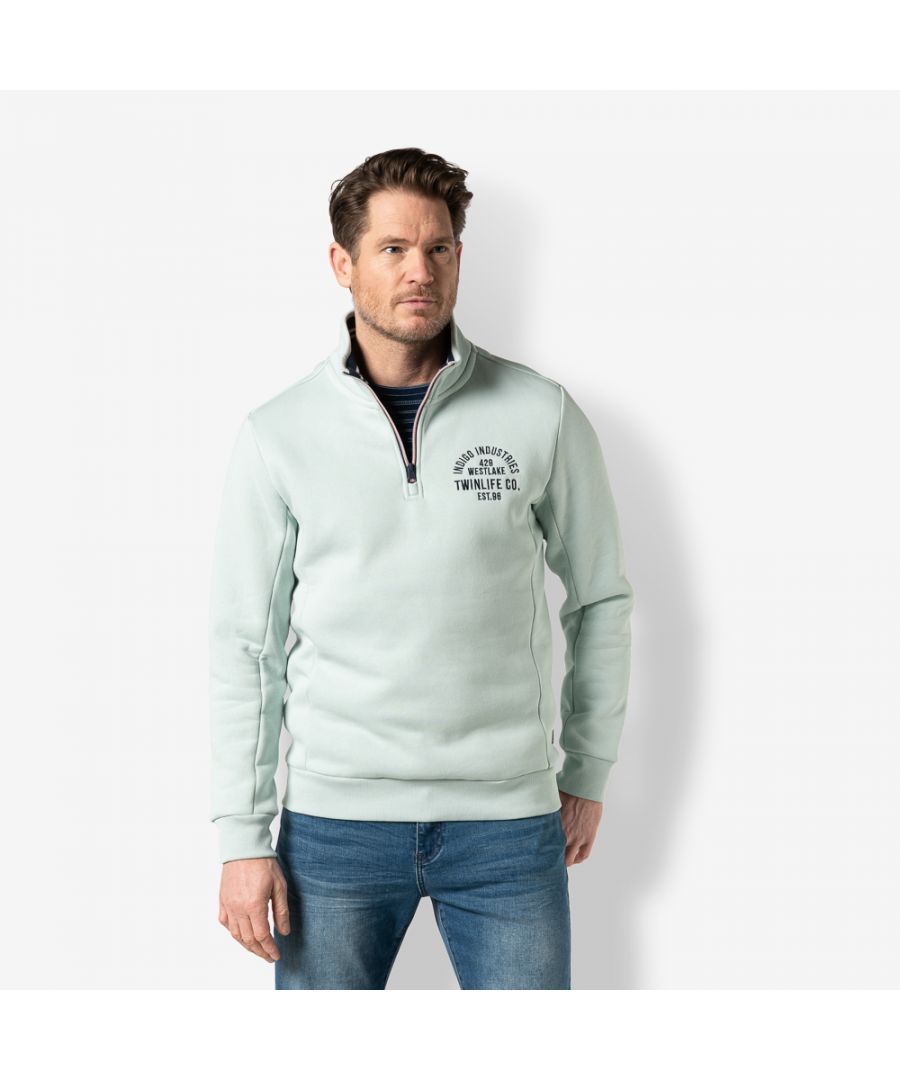 Deze schipper sweater is gemaakt van 60% katoen en 40% polyester en heeft een speciale structuur. De pasvorm is regular fit en heeft een subtiele borduur op de borst. De zijkanten zijn van normale sweat en boorden zijn afgewerkt met een rib voor extra comfort en betere fit.