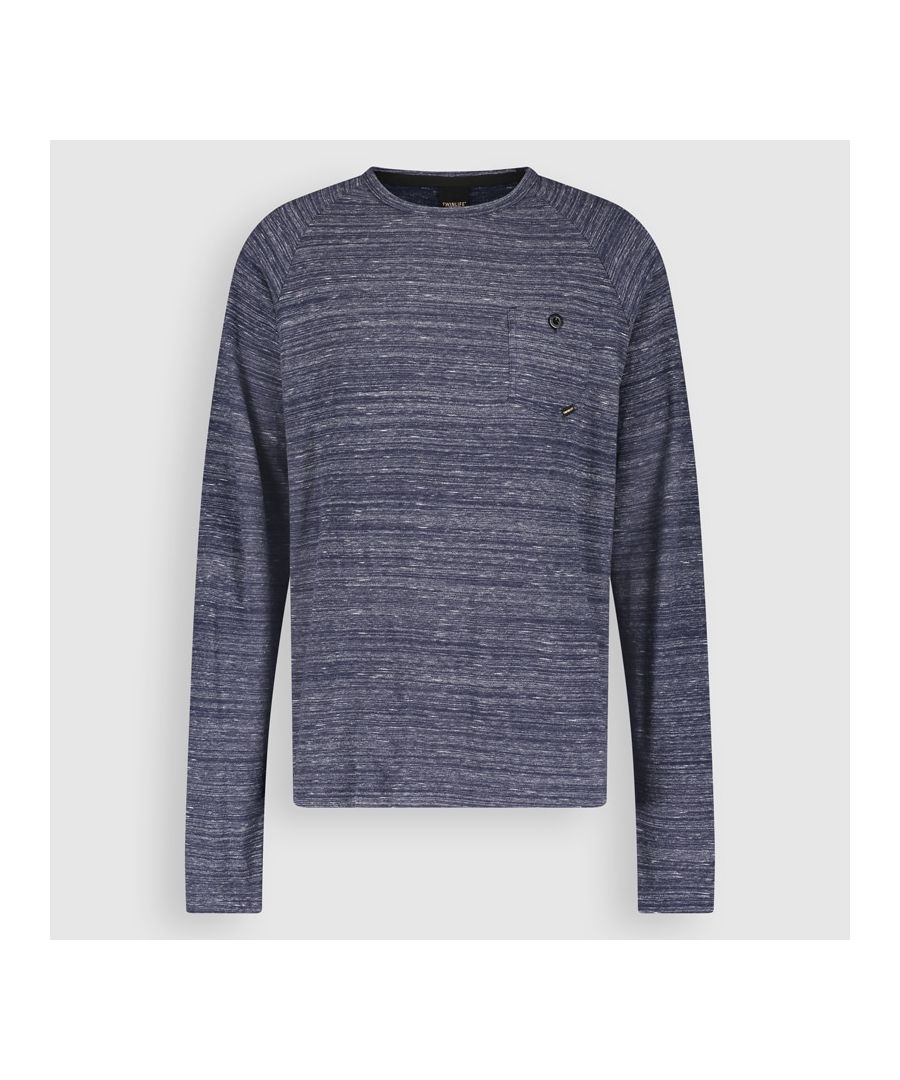 Dit lange mouw t-shirt is gemaakt van 65% polyester en 35% katoen en voelt heel licht aan. Door middel van een speciale injectie techniek heeft deze stof een melange effect. Het heeft raglan mouwen, is regular fit en heeft een ronde hals en een borstzak.