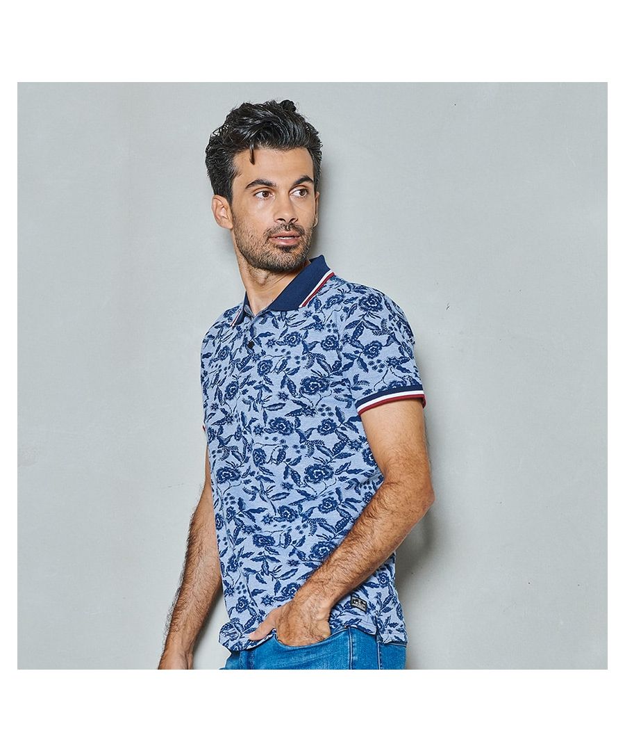 Deze geprinte polo met korte mouwen is gemaakt van 95% BCI katoen en 5% lycra. Er is gebruik gemaakt van 2 kleuren garen pique en de kraag en afwerking mouwen zijn gebreid in contrast kleuren. Aan de binnenkant zitten chambray details en op de sluiting met 2 knopen zit een contrast tape gestikt. Aan de onderkant is een klein label geplaatst. De pasvorm is regular fit. Ons model is 1,88 en draagt maat M