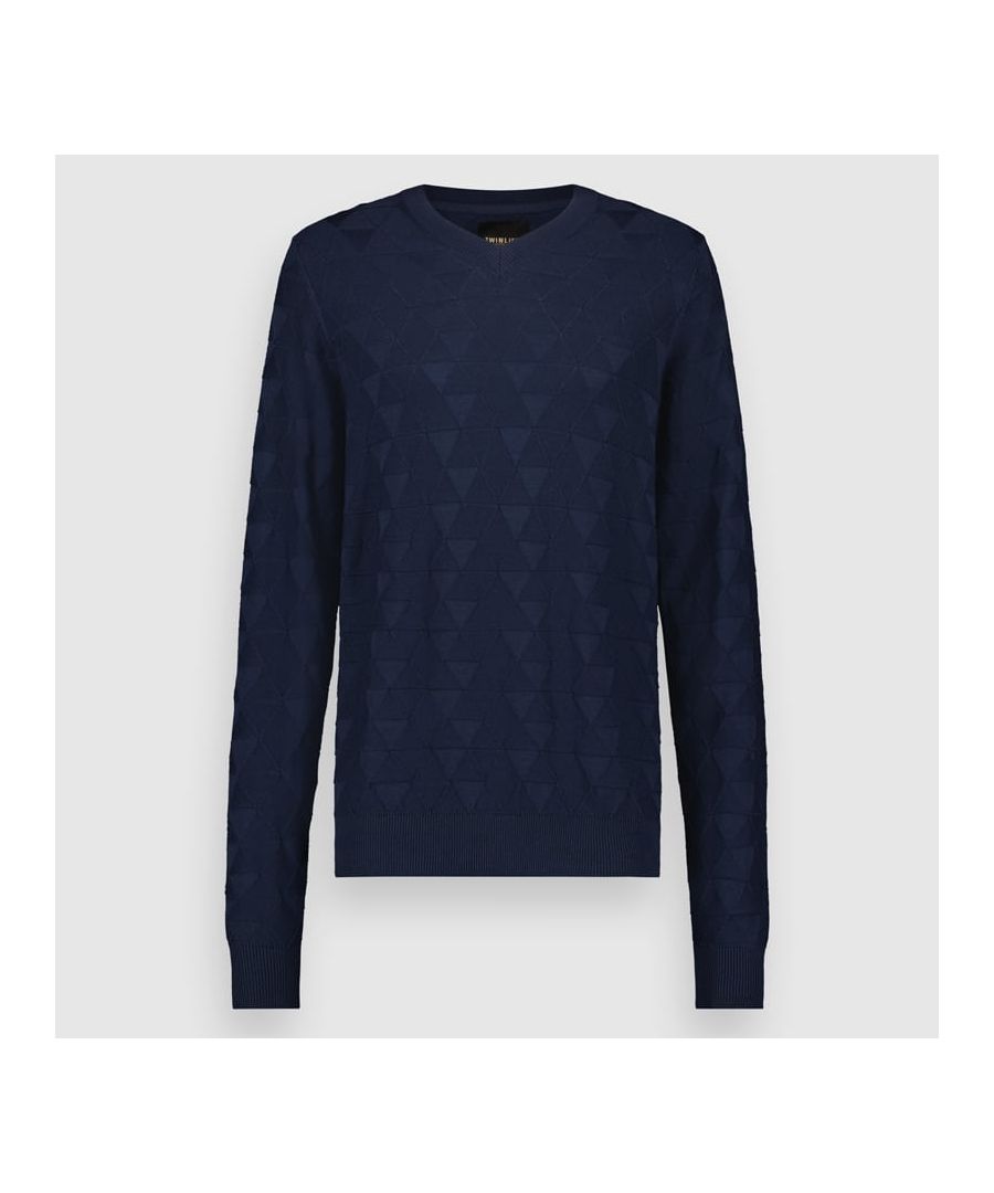 Een stoere trui voor koude herfst dagen. Deze gebreide trui heeft een structuur jaquard, een v-hals en is gemaakt van 50% katoen en 50% acryl. De boorden zijn gebreid in een rib voor betere pasvom en heeft een klein metalen plaatje met het TWINLIFE logo. De pasvorm is regular fit.