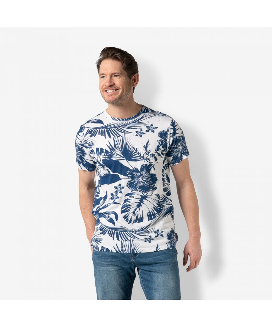 Dit duurzamere t-shirt met regular fit is gemaakt van 52% katoen en 48% Bamboo. Het model heeft korte mouwen, een ronde hals en een grote zomerse print. Hierdoor hoeft duurzaam niet saai te zijn.