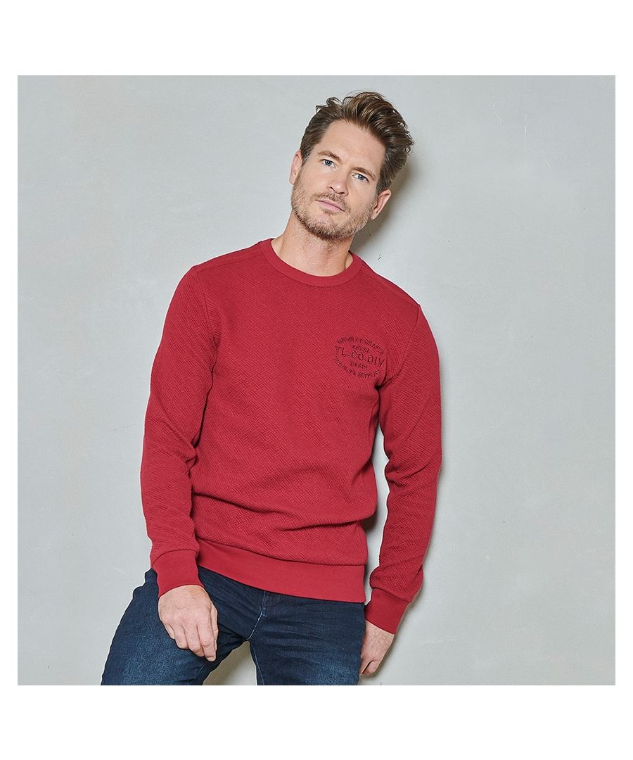 Deze ronder hals sweater is gemaakt van 60% katoen en 40% polyester en heeft een speciale structuur. De pasvorm is regular fit en heeft een subtiele borduur op de borst. De zijkanten zijn van normale sweat en de zakken zijn afsluitbaar door middel van een drukknoop. De boorden zijn afgewerkt met een rib voor extra comfort en betere fit. Ons model is 1,85 en draagt maat M