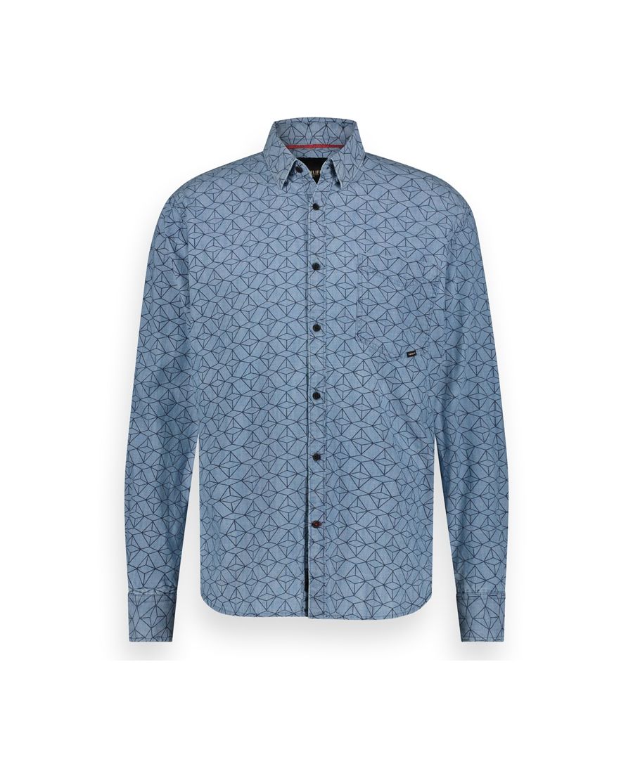 Dit stoere overhemd met lange mouw is gemaakt van 100% indigo chambray 6 Oz en heeft een borstzak met een klein label. De kraag is button down (verborgen) en de onderste knoop is aangezet met ene contrast garen en ook het knoopsgat is met een contrast kleur gestikt. Achterop de kraag bevindt zich ook een kleine knoop. Binnenin de kraag en manchet bevindt zich een contrast piping. De pasvorm is regular fit. Ons model is 1,85 en draagt maat M