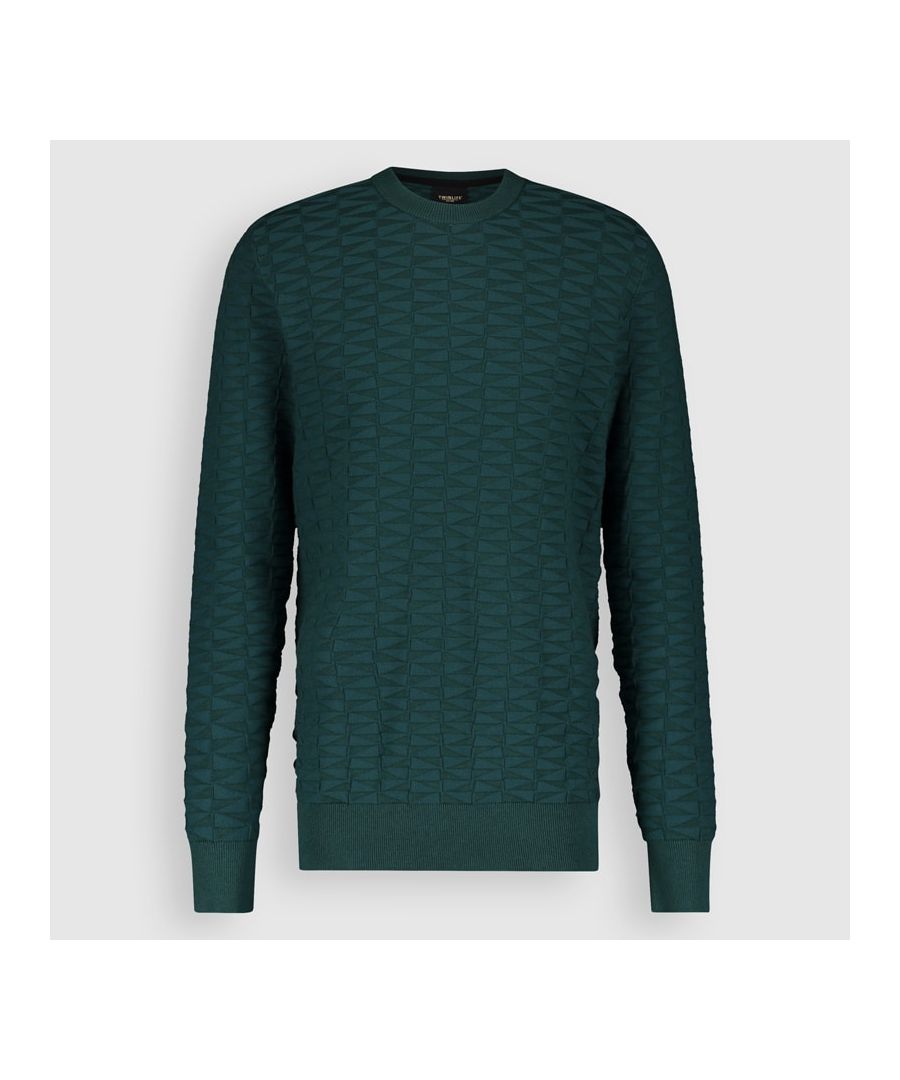 Deze gebreide trui heeft een structuur jaquard, een ronde hals en is gemaakt van 50% katoen en 50% acryl. De boorden zijn gebreid in een rib voor betere pasvom en heeft een klein metalen plaatje met het TWINLIFE logo. De pasvorm is regular fit.