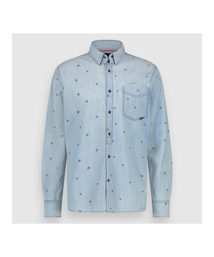 Een regular fit denim shirt mag niet in je kast ontbreken. Een ideaal kledingstuk om eindeloos mee te combineren en op vele manieren draagbaar. Dit shirt is 100% cotton indigo, stoer gewassen waardoor het zijn authentieke uitstraling krijgt en heeft een subtiel printje. De kraag heeft een button-under model en een borstzak. Het lichte gewicht van het shirt maakt het comfortabel en makkelijk te dragen.