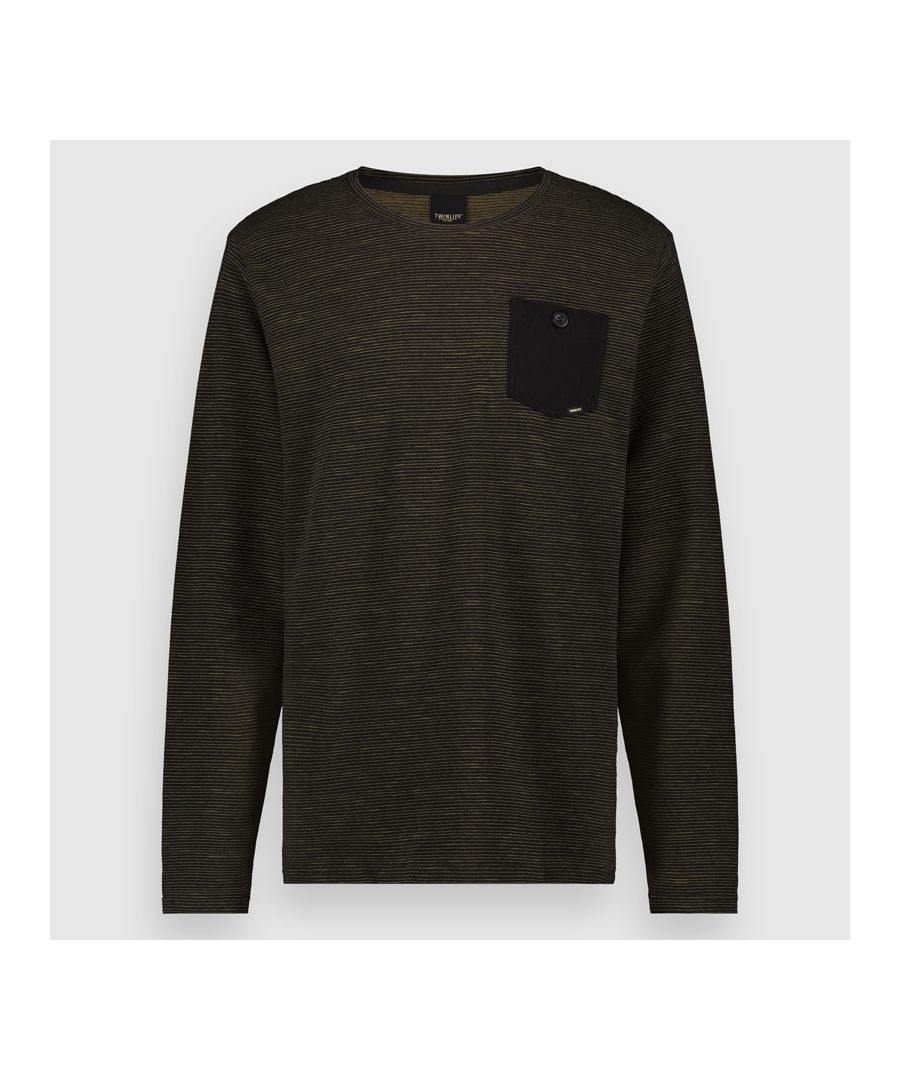 Dit t-shirt is gemaakt van 100% organic katoen en heeft een gebreid streepje. De pasvorm is regular fit, heeft een normale mouw, ronde hals en een contrast zakje op de borst met een TWINLIFE labeltje.