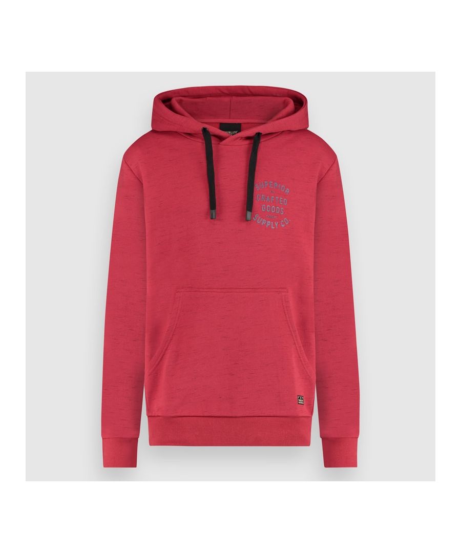 De hoody is onmisbaar in elke kledingkast. Dit exemplaar gemaakt van 80% katoen en 20% polyester, gebrushed aan de binnenkant. De capuchon met overlap is verstelbaar door middel van een strekkoord. De boorden zijn afgewerkt met rib stof in dezelfde kleur. Het toevoegen van een tweekleurige rubberprint op de borst en een geintergreerde kangaroo pocket maken dit model comfortable om te dragen.