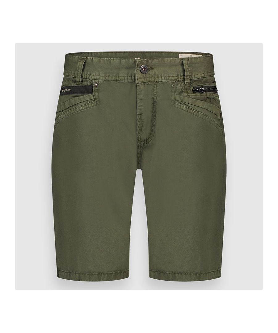 Deze zomerse short is gemaakt van 100% katoen twill. Deze heeft stoere zakken voor en achter, met een afsluitbaar zakje links voor. De speciale wassing geeft de short een stoer uiterlijk.