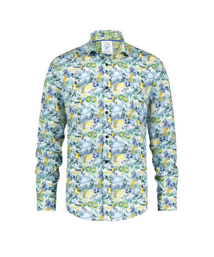 Dit slim fit overhemd voor heren van A fish named Fred is gemaakt van stretchkatoen en heeft een all over print. Het model heeft een klassieke kraag en lange mouwen. Het overhemd heeft een knoopsluiting.