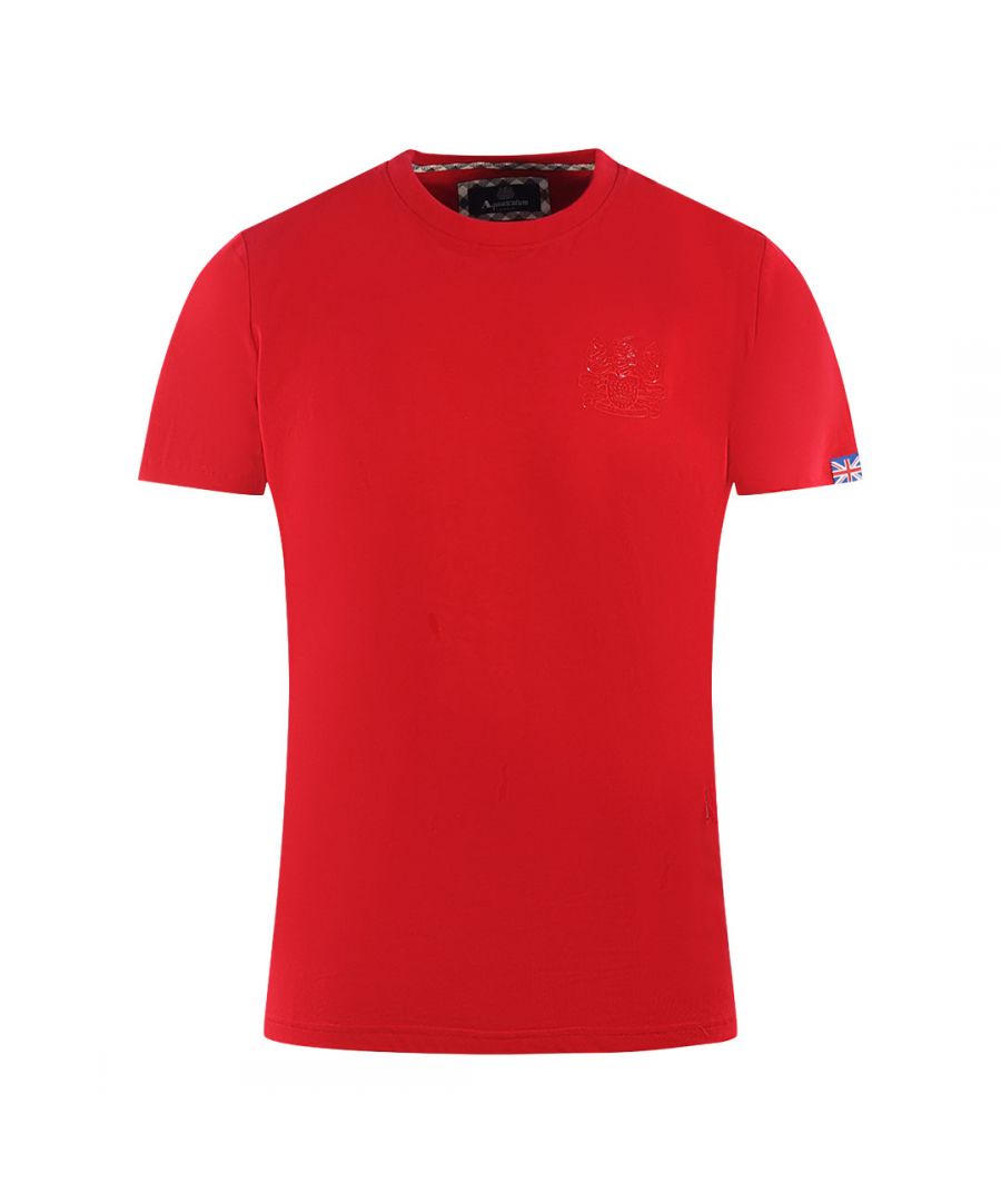 Aquascutum London Tonal Aldis Logo Red T-Shirt. Step out looking sharp in the Aquascutum Logo Red T-Shirt. Showcase your style while sporting the iconic brand logo and make a bold statement wherever you go! Stand-out in luxury and feel the extraordinary quality that Aquascutum promises.. Embrioidered Tonal Aldis Logo On left Chest. 100% Cotton, Regular Fit, Fits True To Size. Crew Neck Tee, British Flag Badge On Left Sleeve, Red Tee. Style Code: T01023 52