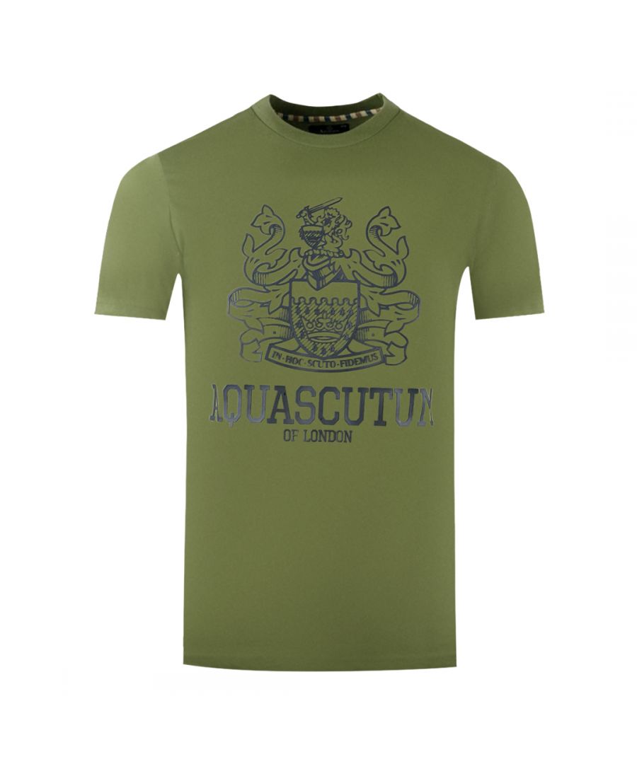 Voel je zelfverzekerd en stijlvol met het Aquascutum Bold Aldis Logo Army Green T-shirt. Gemaakt van comfortabele materialen, dit T-shirt is versierd met Aquascutum's Aldis-logo en beschikt over een klassieke crewhals en korte mouwen. Stap uit met stijl en klasse! Aquascutum merk Logo Army Green Tee, Crew Neck, korte mouwen 100% katoen, reguliere fit Past Pit True to Size Style Code: TS006 06