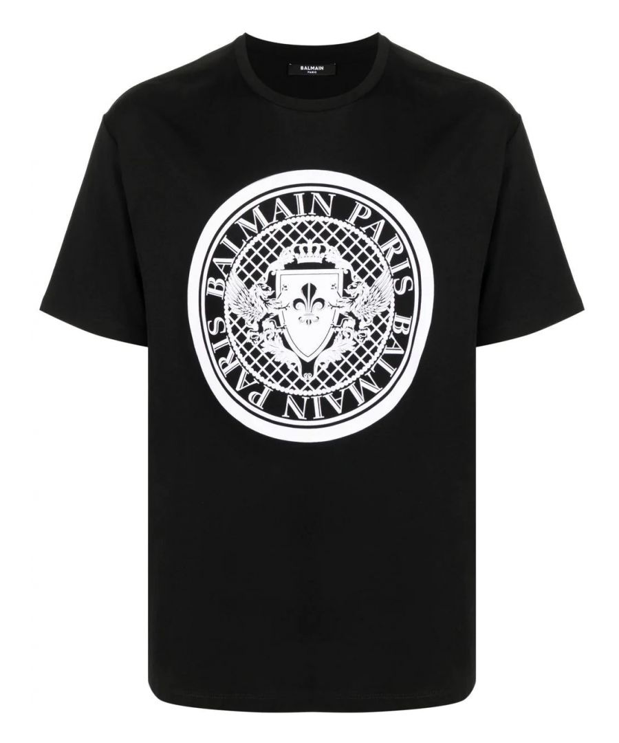 Fluweel katoenen T-shirt met logo van Balmain voorzien van zwart/wit, katoen, logo aan voorkant, ronde hals, korte mouwen en rechte zoom.