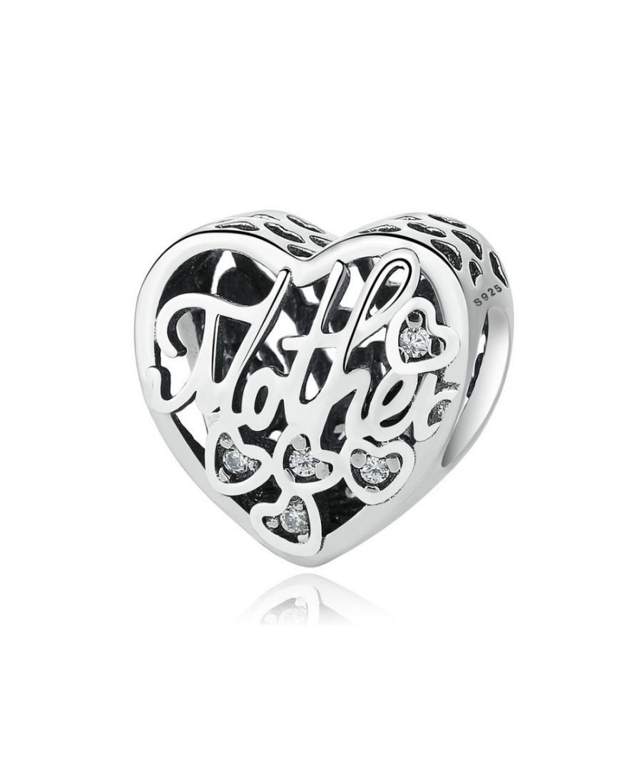 925 zilveren, hartvormige moeder-en-zoon bedelkraal. Frame: 925 sterling zilver met witte kristallen. Afmeting: 1 x 1 cm. Diameter gat: 0,4 cm