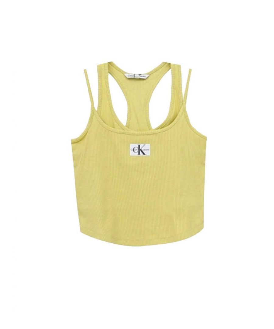 Calvin Klein Classic Ribbed Dames Tanktop Geel Katoen. Authentieke kleding van het merk Calvin Klein - streetwear/sportkleding ontwerp van Calvin Klein - Mode van Calvin Klein for Women, perfect voor het dagelijks leven - De gele tanktop van Calvin Klein past perfect bij de rest van je garderobe - Katoen materiaal comfortabel - klassiek - Klassiek geribbeld -