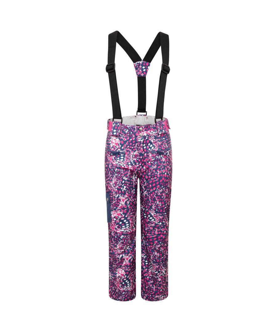 Stof: Gerecycled. Zakken: 1 achterzak, 2 voorzakken, ritssluiting, zijbeenzak. Verstelbare bretels, Kniestuk, Afneembare bretels, Hoogpolige polyesterisolatie, Hoge warmte, Geïsoleerd, Gevoerd, Vulstof met weinig volume, Reflecterende details, Sneeuwlaarzen, Getapete naden. Stoftechnologie: Ared 20/20, Ademend, DWR Afwerking, Vierweg Stretch. Bevestiging: Knop. Waistline: Elastiek. Ontwerp: Luipaardprint. Zoom: Verstevigd, Band omhoog.