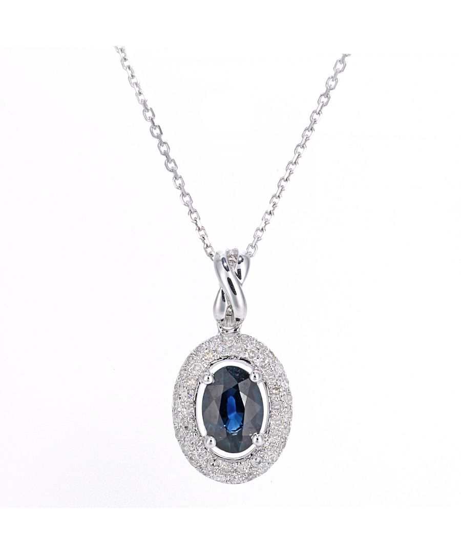 9ct witgouden halsketting met ovale hanger met diamant en saffier