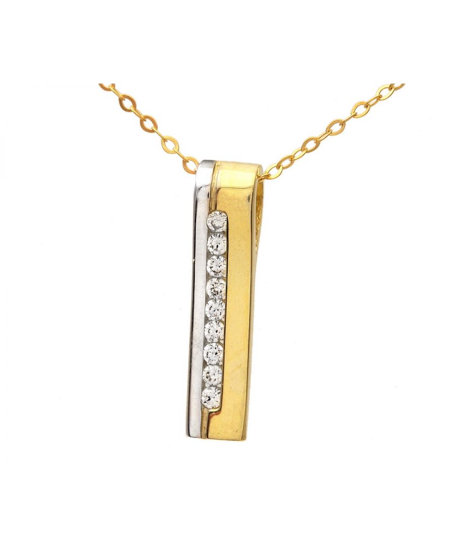 9kt geel- en witgouden kanaalset met zirkonia, stokhanger en ketting van 46 cm
