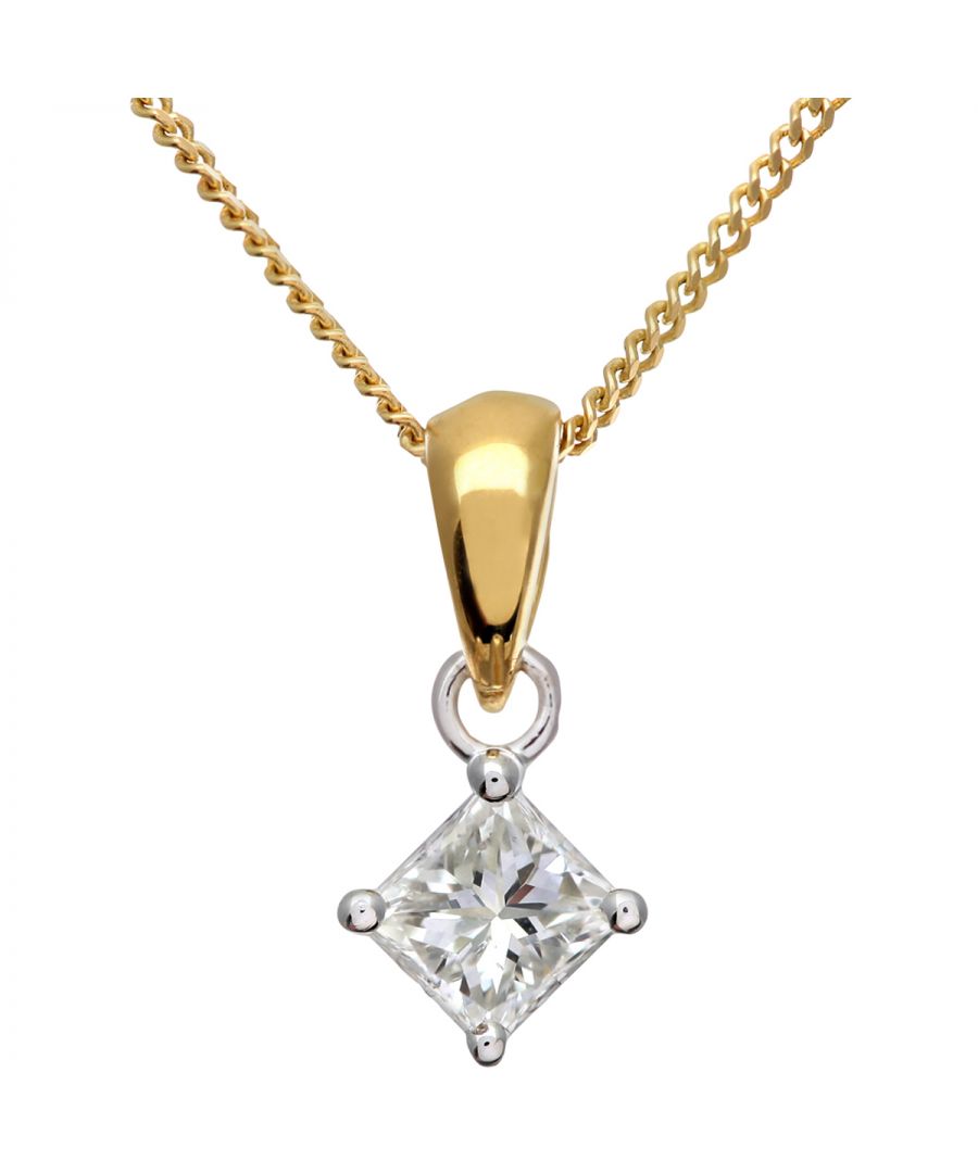 18kt geelgouden 1/4 karaat J/I-gecertificeerde Princess Cut Diamond Solitare-hanger + ketting