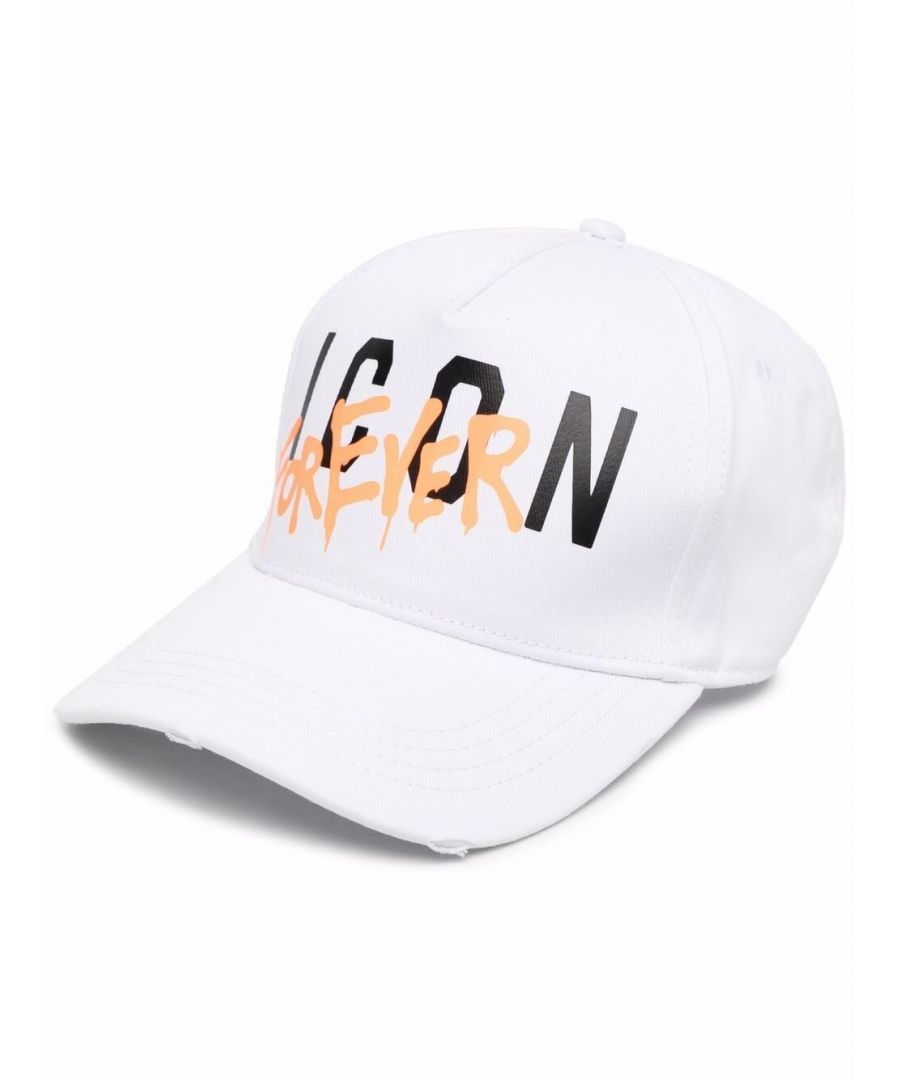 Helderwitte katoenen grafische print met gebogen klep op de gespsluiting aan de voorkant