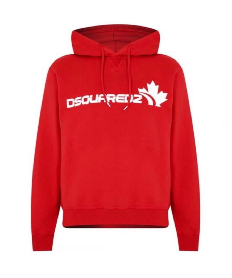 Dsquared2 Maple Leaf Cool Fit Red Hoodie. Wrap yourself in comfortable luxury with the Dsquared2 Cool Fit Red Hoodie. Show off your vibrant red colour and the classic Cool Fit Maple Leaf Logo. Feel confident and energized - look good and stay warm with every wear!. 100% Cotton, Made In Italy. Branded Logo On Chest, Maple Leaf Design, Elasticated Sleeve Endings and Waist Band. Regular Fit, Fits True To Size. Style Code: S71GU0593 S25551 312W