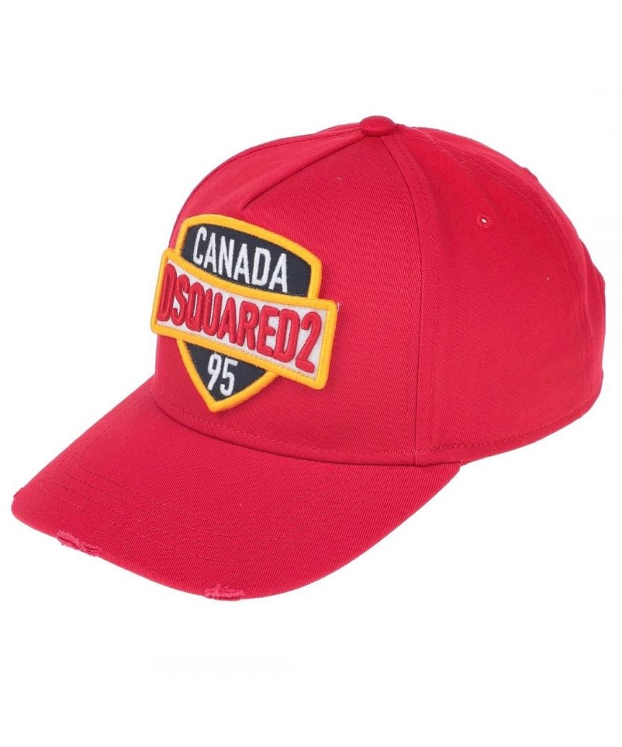 Dsquared2 Embroidered Canada 95 Shield Logo Red Cap. Capture that classic urban look with the Dsquared2 Red Logo Red Cap. Crafted from 100% cotton, this stylish cap features the Dsquared2 Canada 95 shield logo in bright red, plus a unique city of wood embroidered on the back for a bold statement. Make a statement in this iconic logo branding cap.. 100% Cotton, City Of Wood Embriodered On The Back, Dsquared2 Embroidered Canada 95 Shield Logo Red Cap. Dsquared2 Baseball Cap, Logo Branding. Ajustable Buckle On The Back, Regular Fit, Fits True To Size. Style Code: BCM0382 05C00001 4065