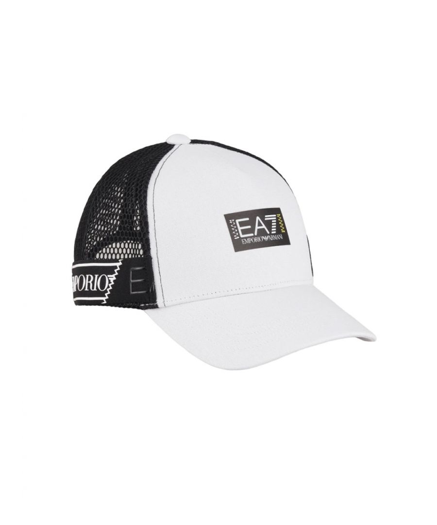 Cap EA7 Klassiek frontlogo Man Wit Kunststof. Authentiek accessoire van het merk EA7 - streetwear/sportkleding ontwerp van EA7 - EA7 voor herenmode, perfect voor het dagelijks leven - Witte EA7 pet past perfect bij de rest van je kleedkamer - comfortabel synthetisch materiaal - klassiek - Klassiek logo op de voorkant -
