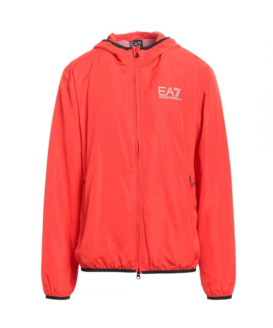 EA7 Grenadine Shell Jacket. This EA7 Logo Red Short Jacket is the perfect way to make a bold statement. Its vibrant orange hue will draw the eye and get you noticed. The sleek design and lightweight material promise maximum comfort. Make a statement with this stylish jacket and stand out from the crowd!. Zip Closure, 100% Polyester. Regular Fit, Branded Logo On Chest. Red Hooded Jacket. Style Code: 8NPB04 PNN7Z 1683