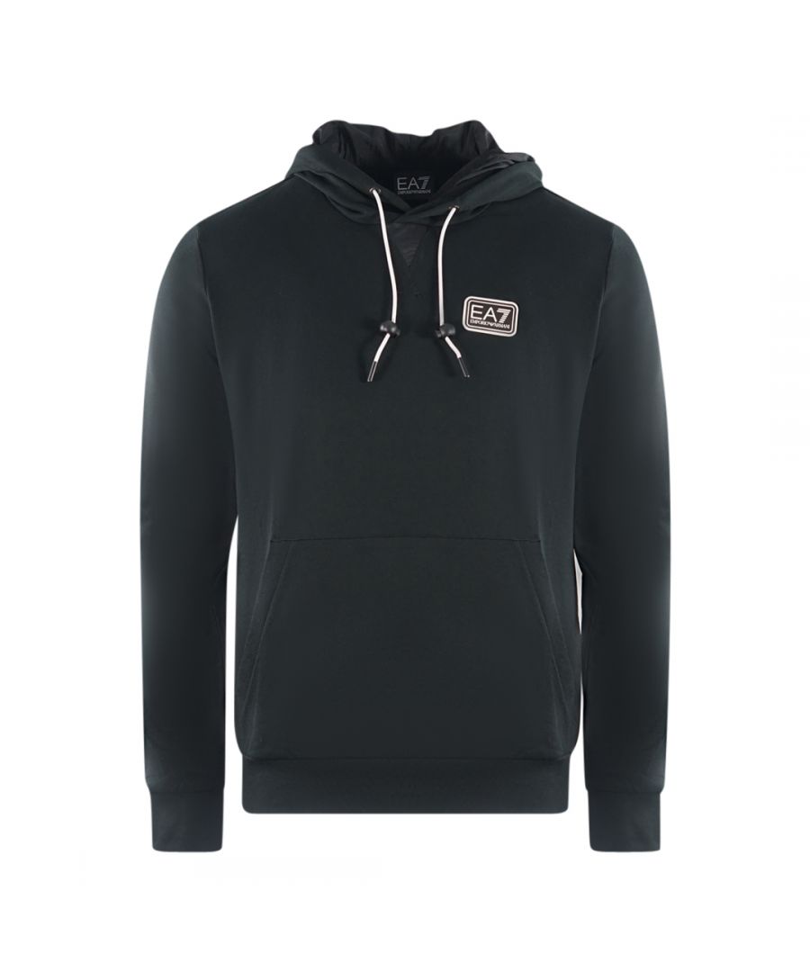 EA7 Branded Patch Logo Black Hoodie. Express streetwear style with this EA7 hoodie. Crafted for a comfortable fit and feel, it features the logo on the chest, elasticated sleeve and hem endings. Feel stylish and chic in this unique piece. Brand Logo On Chest, 100% Cotton. Hooded Jumper, Elasticated Waist and Sleeve Endings. Slim Fit. Style Code: 3RPM24 PJ05Z 0200