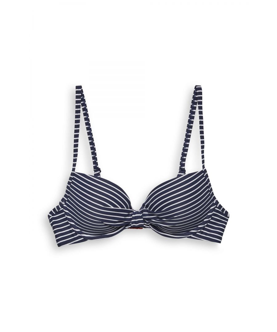 ESPRIT Women Beach voorgevormde gestreepte beugel bikinitop donkerblauw/wit