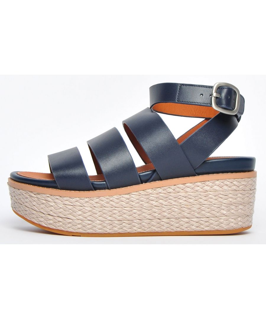 Womens Fit Flop Eloise Back- Strap Espadrille Wedge Sandals in navy.- Slip-on.- Adjustable buckle fastening.- FitFlop branding to footbed.- High wedge sole featuring our supercushioned Microwobbleboard tech inside a firmer shell for stability.- Raffia wrapped for a summery feel with micro-stud detailing.- Smooth leather straps.- Slip-resistant rubber outsole.- Ref.:AY6399
