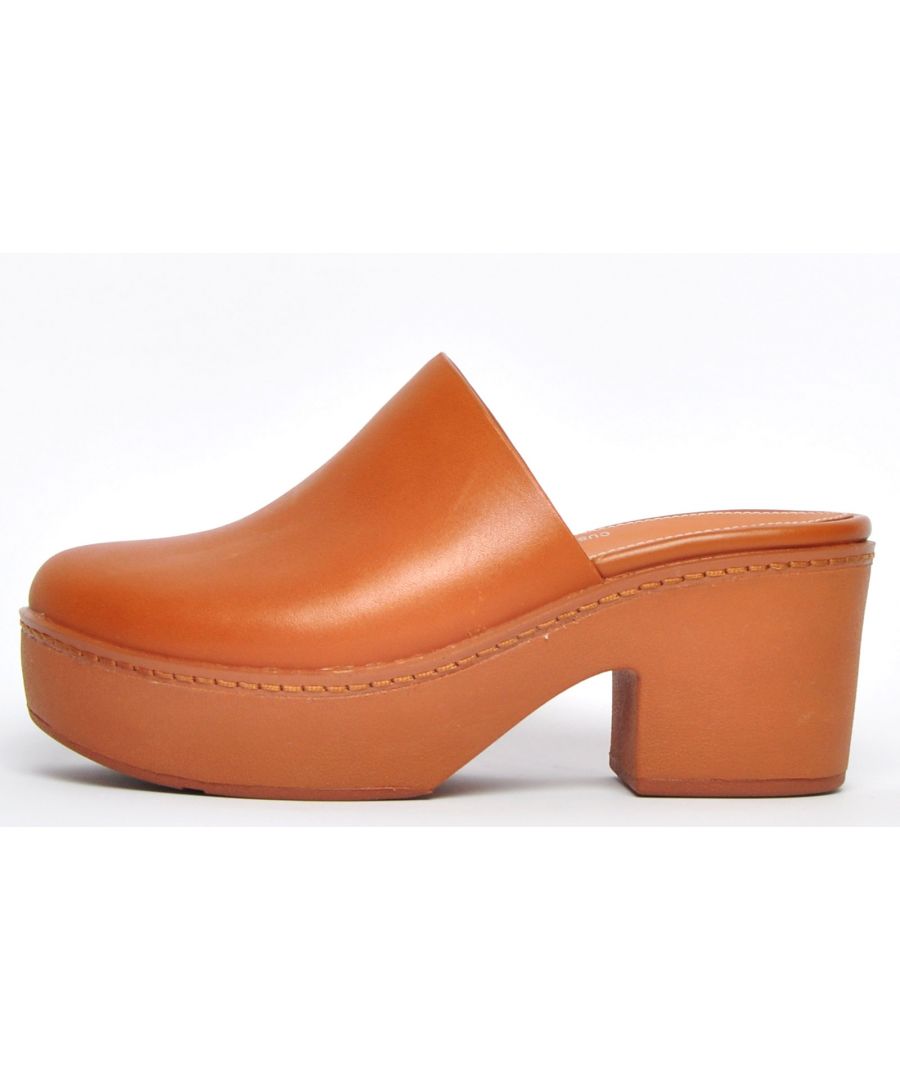 Womens Fit Flop Pilar Leather Mule Platform Shoes in tan.- Leather upper.- Slip on fastening.- Stitch detailing.- Chunky heels.- Ergonomic CushX™ midsole.- Slip-Resistant Rubber outsole.- Ref: EW1592