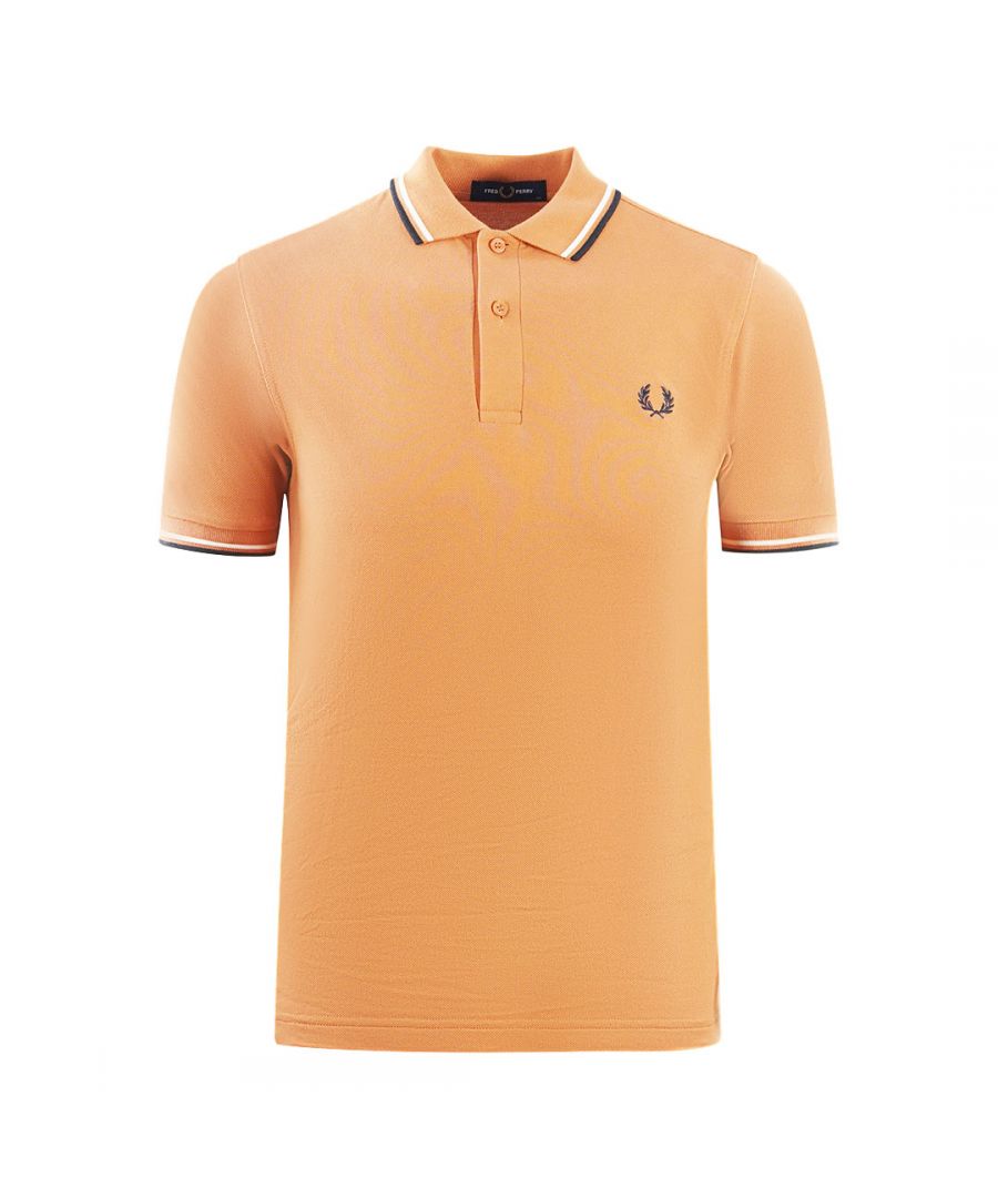 Fred Perry Twin Tipped M3600 P03 Court Clay Polo Shirt. This classic Fred Perry polo shirt adds timeless style to any wardrobe. The subtle design make it a wardrobe staple that can be dressed up or down to suit any occasion. Exuding effortless sophistication and effortless modernity, this polo is sure to become your new favorite!. Pattern On Collar, Fred perry Orange Polo. Button Closure At The Neck. 100% Cotton. Style: M3600 P03