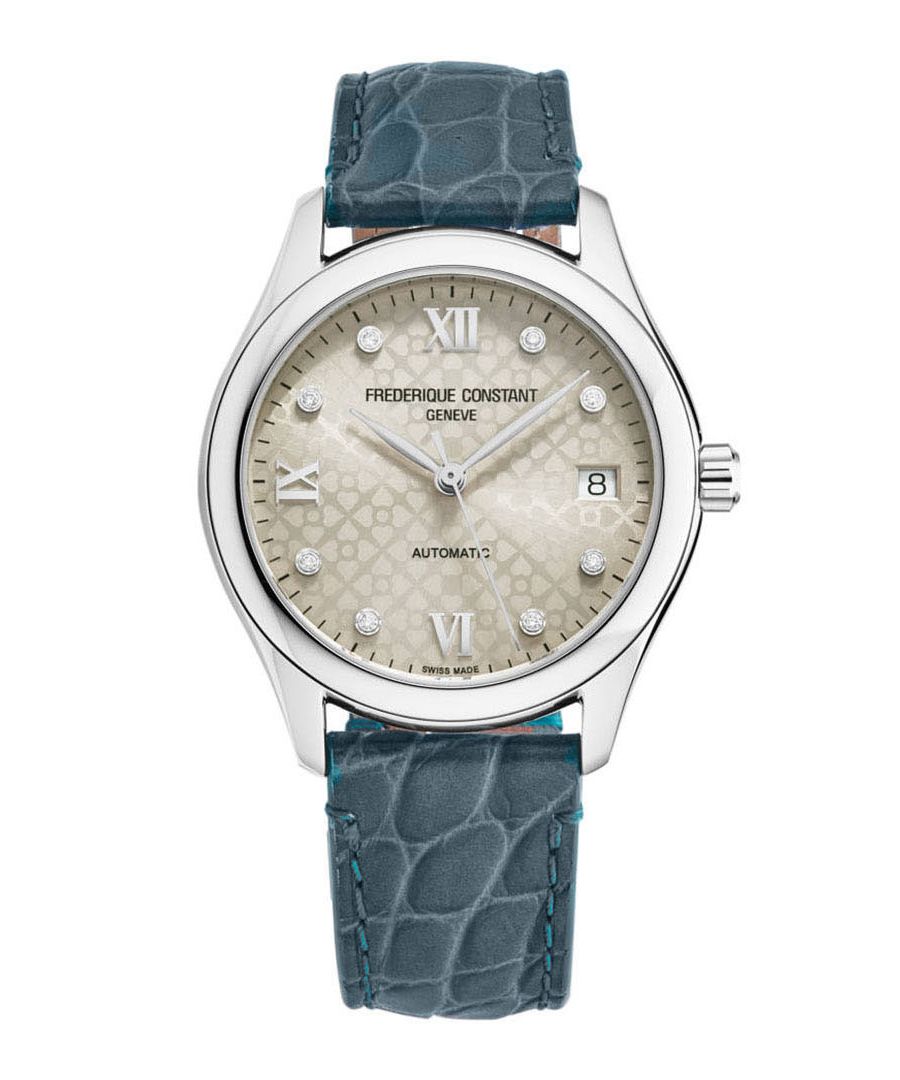 Dit Frédérique Constant Dames horloge beschikt over een Automatisch binnenwerk. De kast (36 mm mm) is vervaardigd uit RVS (Zilverkleurig) en heeft een Saffierglas. De band is Blauw Leer. Dit horloge uit de Frédérique Constant reeks is een mooi en tijdloos geschenk. Verras jezelf of iemand anders met dit cadeau. Bovendien geniet u hierbij van 2 jaar garantie tegen alle fabricagefouten.