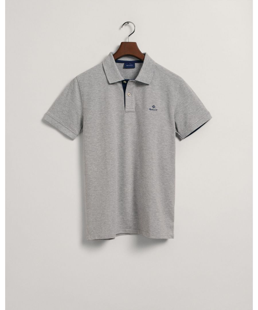 Gant piqué poloshirt met contrasterende kraag voor heren, grijs gemêleerd