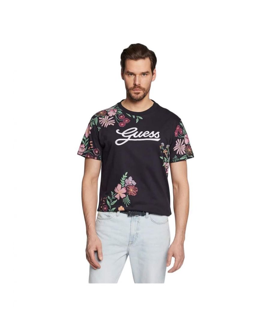 Guess Flower Heren T-shirt Zwart Katoen. Authentieke kleding van het merk Guess - streetwear/sportkleding ontwerp van Guess - Guess for men fashion, perfect voor dagelijks leven - Guess T-shirt in zwart past perfect bij de rest van je garderobe - comfortabel katoen materiaal - klassiek - Bloem -