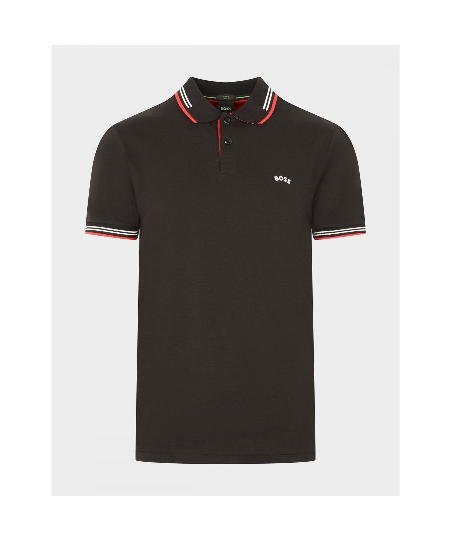 BOSS Green keep themselves relevant by providing youthful pieces that can be worn in and outside of your sporting and casual endeavours. They present this Paul Curve Polo Shirt coming in a black colourway with contrast tipped details for an eye-catching finish. Details: black colourway fold down collar short sleeves two button placket cotton and elastane blend slim fit and branding to the chest completes.