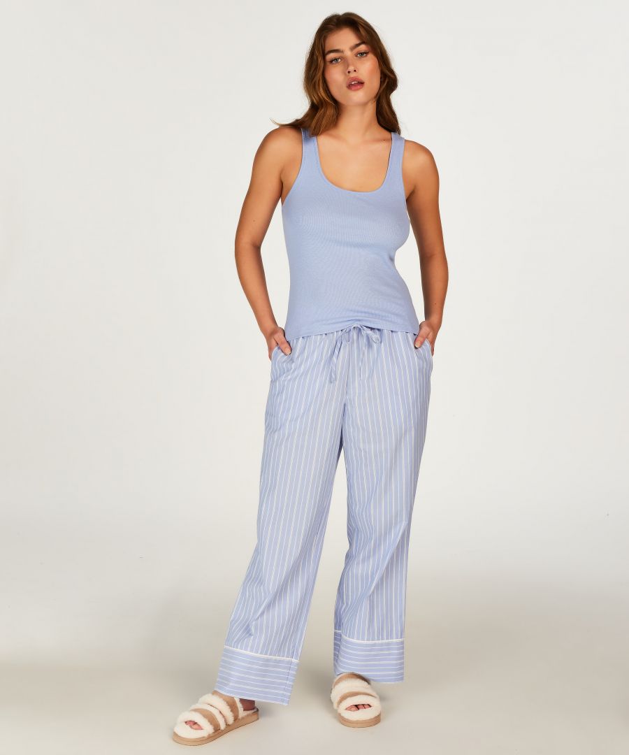 Kruip lekker in bed met deze katoenen broek! Perfect voor iedereen door de comfortabele wijde pasvorm. Combineer met een bijpassende top om de set compleet te maken! De broek is 7,5 centimeter korter dan de regular fit en heeft een petit fit. Dit maakt hem perfect voor vrouwen kleiner dan 1.60m.